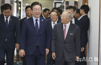 이재명 더불어민주당 대표가 한국경영자총협회(경총)와 만나 성장을 강조했다. 재계가 우려하는 '상법 개정'을 연내 마무리 짓겠다고 말한 지 닷새만으로, 정치권에서는 이율배반적이라는 지적이 나온다. 이 대표는 11일 서울 마포구 경총회관에서 손경식 경총회장을 만났