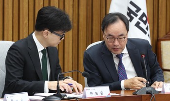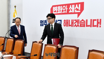 [포토] 회의 참석하는 한동훈 국민의힘 대표와 추경호 원내대표