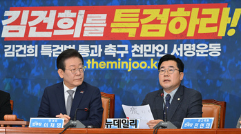더불어민주당이 한동훈 대표를 향해 '김건희특검법' 처리 결단을 재차 촉구했다.민주당은 8일 오전 국회에서 최고위원회의를 열고 전날 대통령 대국민담화에 대한 비판을 쏟아냈다. 이재명 대표는 전날 대통령 대국민담화에 대해 반성은 없었다고 지적했다.이 대표는 "자세