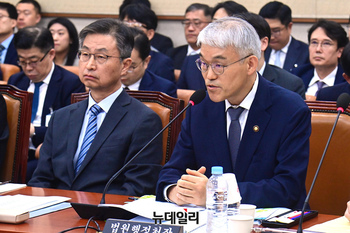 이완규 법제처장이 4일 오후 국회에서 열린 법제사법위원회 전체회의에서 의원들의 질문에 답하고 있다.