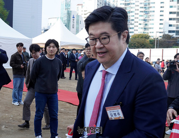 김병주 MBK파트너스 회장이 4일 오후 서울 서대문구 북가좌동에서 열린 서울시립 김병주도서관 착공식에 입장하고 있다. '김병주 도서관' 이름은 도서관 건립비용 절반인 300억원을 기부한 김병주 MBK파트너스 회장의 이름을 따서 지었다. 총 사업비는 675억원이
