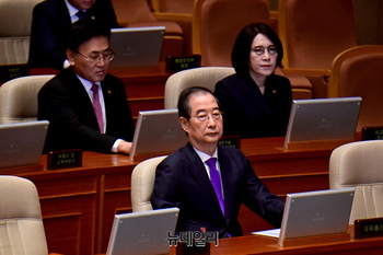 한덕수 국무총리가 4일 오전 국회에서 열린 본회의에서 2025년도 예산안 및 기금운용계획안에 대한 시정연설에 참석해 앉아 있다.