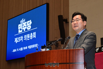 박찬대 더불어민주당 원내대표가 4일 오전 국회에서 열린 의원총회에서 모두발언을 하고 있다.