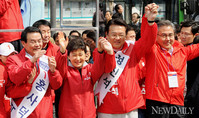 유세차 탄 박근혜 "새누리, 이념은 민생!"