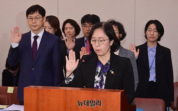 [포토] 증인선서 하는 신영숙 여성가족부 장관 직무대행