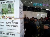 시민들, 13억 돈상자 들고 언론사 항의방문