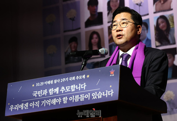 박찬대 더불어민주당 원내대표가 29일 오전 국회에서 열린 10.29 이태원참사 2주기 국회 추모제에서 추도사를 하고 있다. (사진=공동취재)