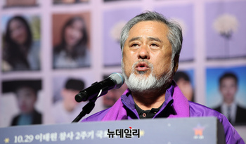 이정민 10·29 이태원 참사 유가족협의회 운영위원장이 29일 국회에서 열린 10·29 이태원참사 2주기 추모식에서 인사말을 하고 있다. (사진=공동취재)