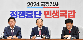 추경호 국민의힘 원내대표가 29일 오전 국회에서 열린 국정감사대책회의에서 모두발언을 하고 있다.