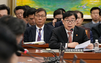 유철환 국민권익위원장이 25일 오전 서울 여의도 국회에서 열린 국회 정무위원회의 국가보훈부, 국무조정실 등에 대한 종합감사에서 의원들의 질의에 답하고 있다.