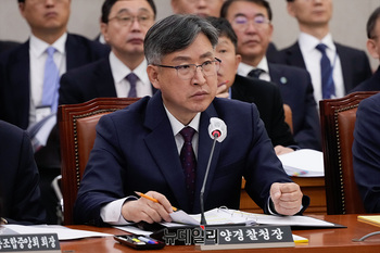 김종욱 해양경찰청장이 25일 오전 서울 여의도 국회에서 열린 국회 농림축산식품해양수산위원회의 해양수산부에 대한 종합감사에 출석해 자리하고 있다.