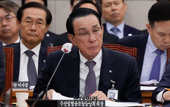 노동진 수산업협동조합중앙회 회장이 25일 오전 서울 여의도 국회에서 열린 국회 농림축산식품해양수산위원회의 해양수산부에 대한 종합감사에서 의원들의 질의를 듣고 있다.