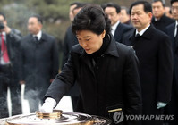 이명박 대통령은 1일 오전 서울 동작동 국립현충원을 방문하는 것으로 새해 첫날 아침을 시작했다.이 대통령은 오전 8시 김황식 국무총리를 비롯한 국무위원 및 청와대 참모들과 함께 현충원에 도착, 현충탑에 헌화ㆍ분향하고 묵념을 하면서 호국 영령의 넋을 기렸다.