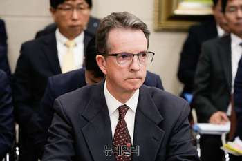 피터 알덴우드 애플코리아 대표이사가 24일 오후 서울 여의도 국회에서 열린 국회 정무위원회의 금융위원회 등에 대한 종합감사에 출석해 자리하고 있다.
