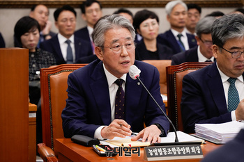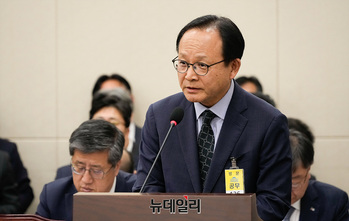 정기섭 포스코홀딩스 사장이 24일 오후 서울 여의도 국회에서 열린 국회 정무위원회의 금융위원회 등에 대한 종합감사에서 의원들의 질의에 답하고 있다.