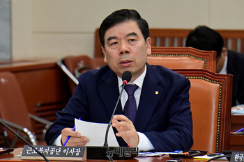 박종길 근로복지공단 이사장이 22일 오전 국회에서 열린 환경노동위원회의 근로복지공단, 한국산업인력공단 등에 대한 국정감사에서 의원 질의에 답하고 있다.