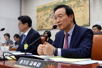 임태희 경기도교육감이 22일 국회 교육위원회에서 열린 서울특별시교육청·인천광역시교육청·경기도교육청 국정감사에서 의원 질의에 답하고 있다.