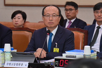김국현 서울행정법원장이 22일 오후 국회에서 열린 법제사법위원회의 서울고등법원, 서울중앙지방법원 등에 대한 국정감사에서 의원 질문을 듣고 있다.