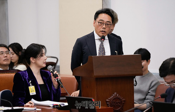 곽근엽 아디다스 코리아 대표가 21일 오후 서울 여의도 국회에서 열린 국회 정무위원회의 공정거래위원회, 한국소비자원, 한국공정거래조정원에 대한 국정감사에서 의원들의 질의에 답하고 있다.