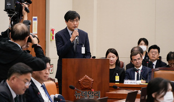 함윤식 우아한형제들 부사장이 21일 오후 서울 여의도 국회에서 열린 국회 정무위원회의 공정거래위원회, 한국소비자원, 한국공정거래조정원에 대한 국정감사에서 의원들의 질의에 답하고 있다.