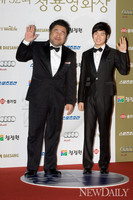 25일 저녁 서울 경희대학교 평화의 전당에서 '제 32회 청룡영화제' 시상식이 열린 가운데 배우 고창석과 이다윗이 포토세션을 갖고 잇다.