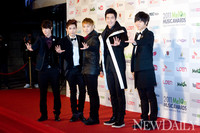 24일 저녁 7시 서울 송파구 올림픽공원 체조경기장에서 ‘2011 멜론 뮤직 어워즈’ 시상식이 열린 가운데 아이돌그룹 슈퍼 주니어가 포토세션을 갖고 있다.디지털 음원 이용량 중심의 공전심사를 통해 사용자 중심의 객관적 대중음악 지표를 창출해온 ‘멜론 뮤직 어워즈(Mel