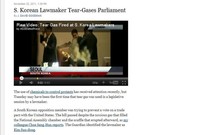 “야당 의원이 사람들을 질식시키려 했다.”대한민국 헌정사상 초유의 테러 사건인 ‘최루탄 국회’가 전 세계적으로 망신을 톡톡히 당했다.에 따르면 미국의 정치전문지 폴리티코가 22일(현지시간) 한국 국회의 한-미 자유무역협정(FTA) 비준안 처리 소식을 전하면서 쓴 기사의