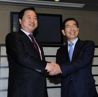 "많이 바뀔 겁니다." 16일 박원순 서울시장과 김두관 경남지사가 서울 강남구 삼성동 한 호텔에서 한자리에 모였다. 박 시장은 김 지사와 악수를 나눈 뒤 이 같이 말했다.박 시장의 자신의 찬 목소리에 김 지사는 말없이 고개만 끄덕거렸고 서로는 힘껏 손을 맞잡았다.야권