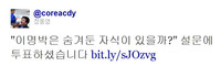 정동영 민주당 최고위원의 트위터에는 2일 새벽 “‘이명박은 숨겨둔 자식이 있을까?’ 설문에 투표하셨습니다.”라는 글이 올라오는 해프닝이 일었다. 정부-여당에 맞서고 있는 야당 최고위원이 대통령의 스캔들 설문에 참여했다는 내용이 알려지자 순식간에 수십 명의 팔로워들에게