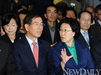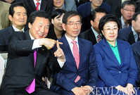 [포토] 박원순-한명숙 "이번 기회에, 완전히‥"