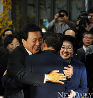 [포토] "해냈습니다" 얼싸안는 손학규와 박원순