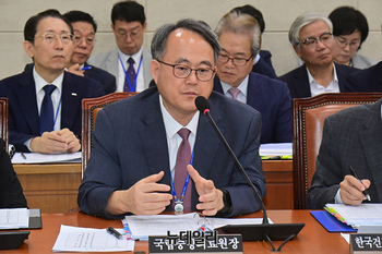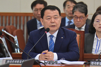 윤석대 한국수자원공사 사장이 17일 오전 국회에서 열린 환경노동위원회의 한국수자원공사 등에 대한 국정감사에 출석해 의원 질의에 답하고 있다.