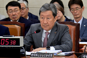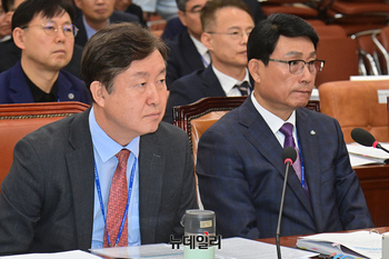 송형근 국립공원관리공단 이사장이 17일 오전 국회에서 열린 환경노동위원회의 한국수자원공사 등에 대한 국정감사에 출석해 의원 질의를 듣고 있다.