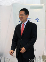 서울시장 보궐선거일인 26일 오전 서울 방배3동 방배웨딩홀에 마련된 투표소에 박원순 무소속 후보가 투표를 준비하고 있다.