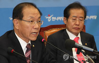 한나라당 홍준표 대표가 24일 국회에서 열린 최고위원회의에서 안철수 서울대 교수의 박원순 서울시장후보 지원에 대해 발언하고 있다. ⓒ연합뉴스한나라당 홍준표 대표는 24일 안철수 서울대 교수가 야권 박원순 후보를 지원키로 한 것과 관련해 “교수직을 정치에 이용하지 말고