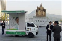 18일 저녁 7시께 무소속 박원순 후보의 유세 차량이 광화문 광장에 진입한다. 지켜보던 서울시 직원들이 이를 제지한다. “여기 들어오시면 안됩니다.” 차량은 늘 있는 일인 듯 그냥 광장으로 진입한다. 지켜보는 시청 직원도 더 이상은 어쩌지 못한다. 시청 직원이 옆에 서