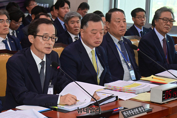유병태 한국주택도시보증공사 사장이 16일 오전 국회 국토교통위원회에서 열린 한국부동산원·주택도시보증공사·새만금개발공사 등에 대한 국정감사에서 의원들의 질문에 답하고 있다.