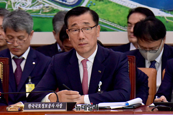 어명소 한국국토정보공사 사장이 16일 오전 국회 국토교통위원회에서 열린 한국부동산원·주택도시보증공사·새만금개발공사 등에 대한 국정감사에서 의원들의 질의를 듣고 있다.
