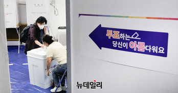 10·16 재보궐선거일인 16일 오전 서울 동작구에 마련된 투표소에서 유권자들이 투표를 하고 있다.서울시교육감과 기초자치단체장 4명을 선출하는 재보궐선거 본투표는 오후 8시까지 진행된다.