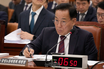 김태기 중앙노동위원회 위원장이 15일 오전 서울 여의도 국회에서 열린 국회 환경노동위원회의 경제사회노동위원회 등에 대한 국정감사에서 의원들의 질의를 듣고 있다.