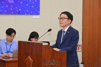 이원희 국립한경대학교 총장이 15일 오전 서울 여의도 국회에서 열린 국회 교육위원회의 서울대학교, 서울대병원 등에 대한 국정감사에서 업무보고를 하고 있다.