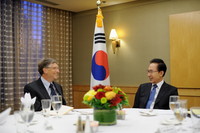 빌 게이츠 `빌&멜린다 재단' 회장이 한국 정부와 효과적인 국제원조를 위한 공동 협력방안을 모색하자는 의향을 이명박 대통령에게 제안했다.마이크로소프트 창업자인 게이츠 회장은 지난 23일(현지시간) 미국 시애틀에서 이 대통령과 한 조찬회동에서 이처럼 말했다.게이츠 회장은