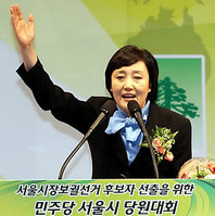 박영선 민주당 정책위의장이 10.26 서울시장 보궐선거 민주당 후보로 최종 결정됐다. 민주당은 25일 서울 잠실실내체육관에서 서울시당대회를 갖고 후보 경선을 실시한 결과 박 후보은 최종 득표율 38.3%를 얻어 천정배, 추미애, 신계륜 등 다른 후보를 크게 앞질렀다.