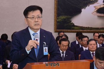 강용석 해양환경공단 이사장이 14일 오전 국회 열린 한국해양진흥공사, 수산업협동조합중앙회, 해양환경공단 등에 대한 국정감사에서 인사말을 하고 있다.