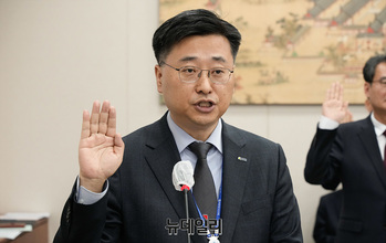 정제영 한국교육학술정보원장이 11일 오전 서울 여의도 국회에서 열린 한국교육학술정보원, 한국고전번역원, 사립학교교직원연금공단 등에 대한 국정감사에서 증인선서를 하고 있다.