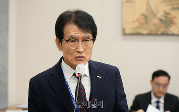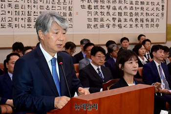 이하운 한국사학진흥재단 이사장이 11일 오전 서울 여의도 국회에서 열린 한국교육학술정보원, 한국고전번역원, 사립학교교직원연금공단 등에 대한 국정감사에서 업무보고를 하고 있다.