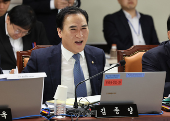 김종양 국민의힘 의원이 11일 오전 서울 서대문구 경찰청에서 열린 국회 행정안전위원회의 경찰청에 대한 국정감사에서 발언하고 있다.