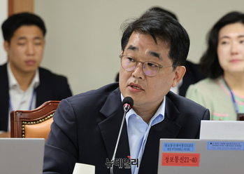 배준영 국민의힘 의원이 11일 오전 서울 서대문구 경찰청에서 열린 국회 행정안전위원회의 경찰청에 대한 국정감사에서 질의를 하고 있다.