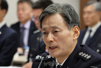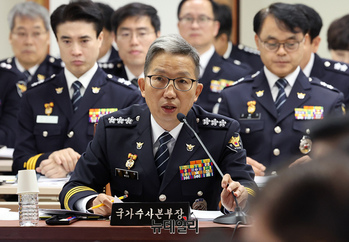 조지호 경찰청장이 11일 오전 서울 서대문구 경찰청에서 열린 국회 행정안전위원회의 경찰청에 대한 국정감사에서 질의에 답하고 있다.