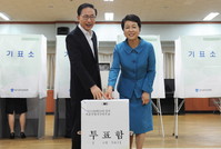 이명박 대통령과 부인 김윤옥 여사가 18일 서울시가 추진하는 무상급식 주민투표에서 부재자 투표를 했다. 이 대통령은 이날 오전 청와대에서 국민경제대책회의를 주재한 뒤 김 여사와 함께 서울 종로구청에 마련된 종로구선거관리위원회 부재자 투표소를 찾아 한 표의 권리를 행사했